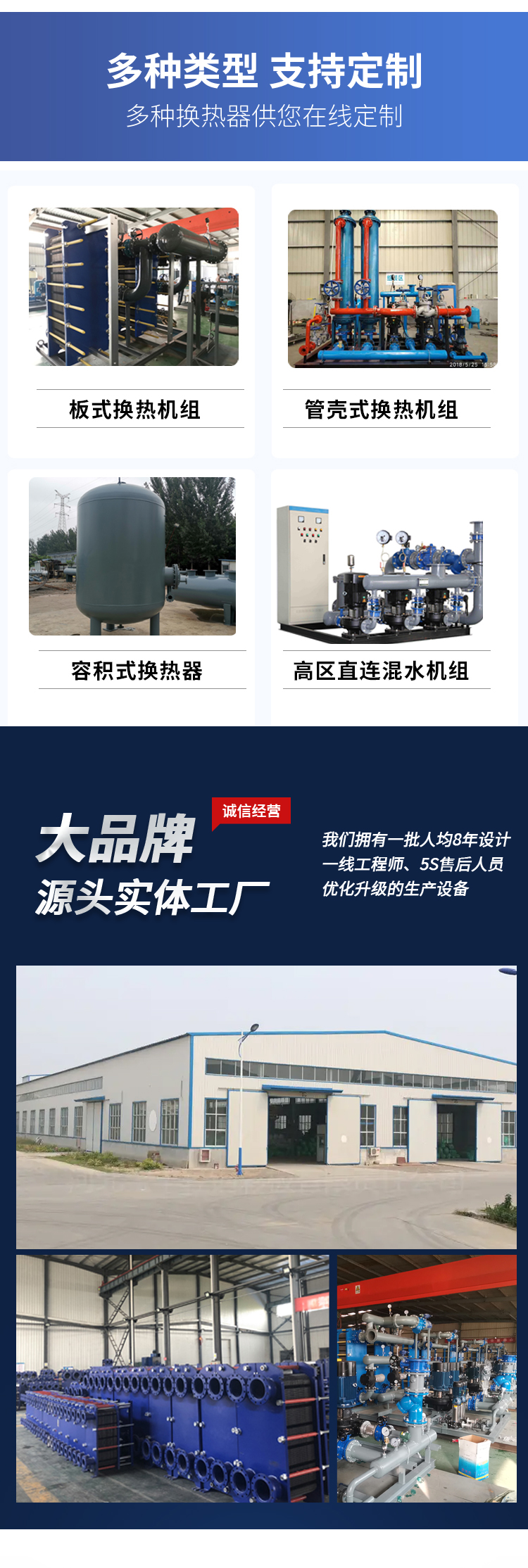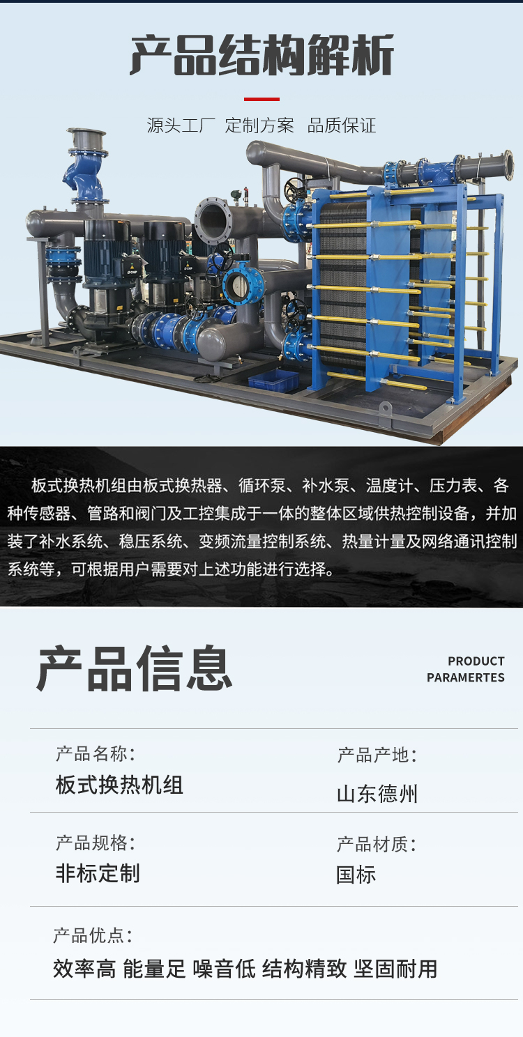公司長期供應(yīng)定制:換熱器、換熱機(jī)組、供水設(shè)備、水處理設(shè)備、過濾除污設(shè)備、水箱、冷卻塔及其他冷暖設(shè)備。公司致力于以政府機(jī)關(guān)、企業(yè)、商場、醫(yī)院、學(xué)校、家庭為一體,提供一站式冷暖/水處理項目解決方案。